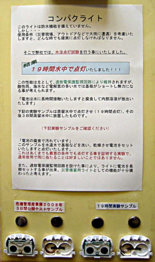 コンパクライトは防水機能を備えていません。しかし、弊社水没規格に基づき水没試験を行い、19時間点灯を確認しています。通常、雨水に当たる事は好ましい事ではありません。