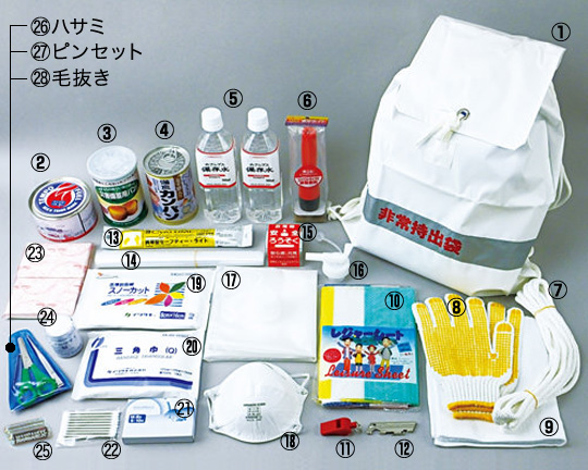 23.ポケットティッシュ / 24.伸縮包帯 / 25.単三電池